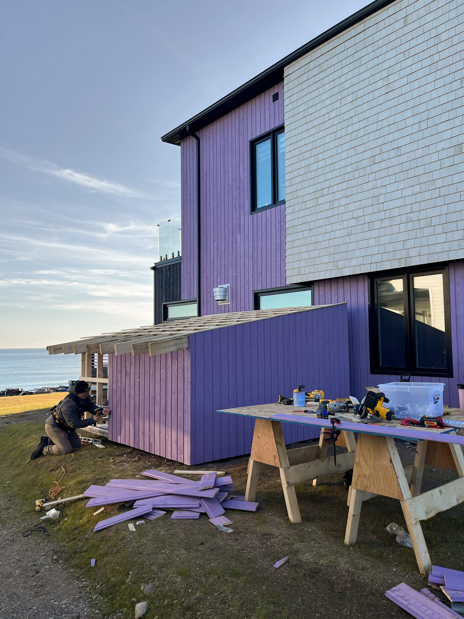 After graduating from the NBCC Pre-Employment Carpentry Program in the spring of 2022, I was hired by the homeowner to work on the Purple Build. I contributed to this project full time for 1 year and had the opportunity to see all of the stages of a new house build.